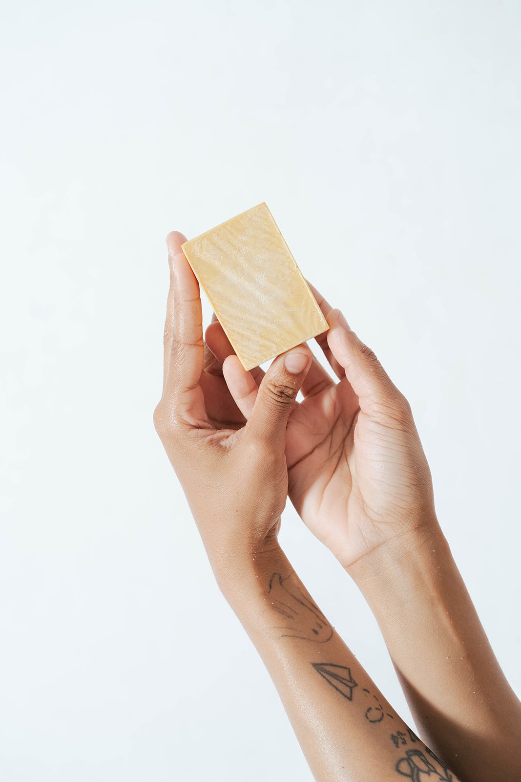 Lather the bar between your hands or onto a washcloth and apply to damp skin. Gently massage into the face and body, allowing the ingredients to cleanse and nourish the skin. Rinse thoroughly and pat dry.